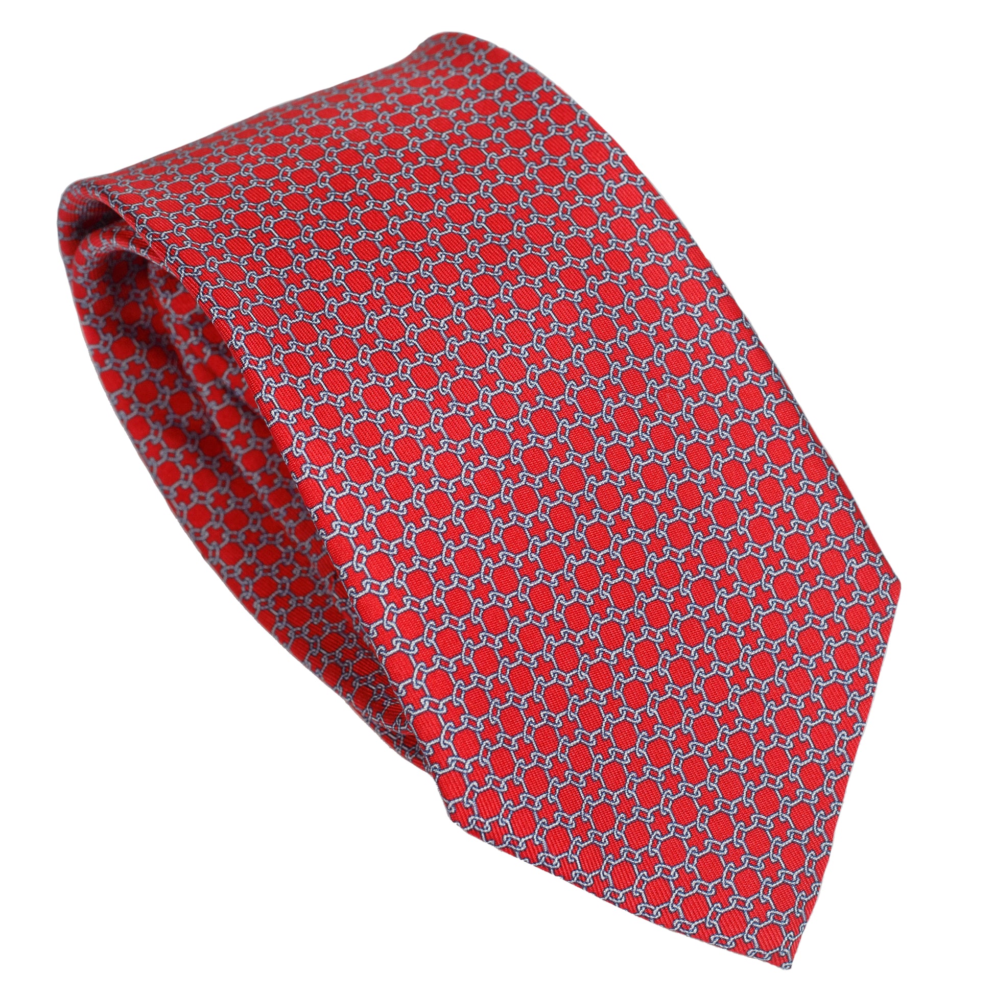 Cravatta classica rossa in pura seta italiana al 100% con fitta micro-geometria, dal carattere contemporaneo e dinamico. La texture compatta crea un effetto visivo raffinato e audace, senza essere eccessiva.