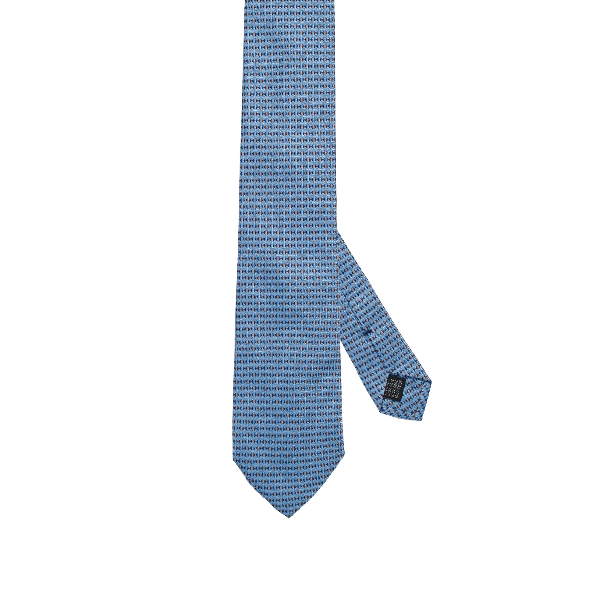Cravatta in seta italiana al 100% azzurra con motivo geometrico a micro triangoli