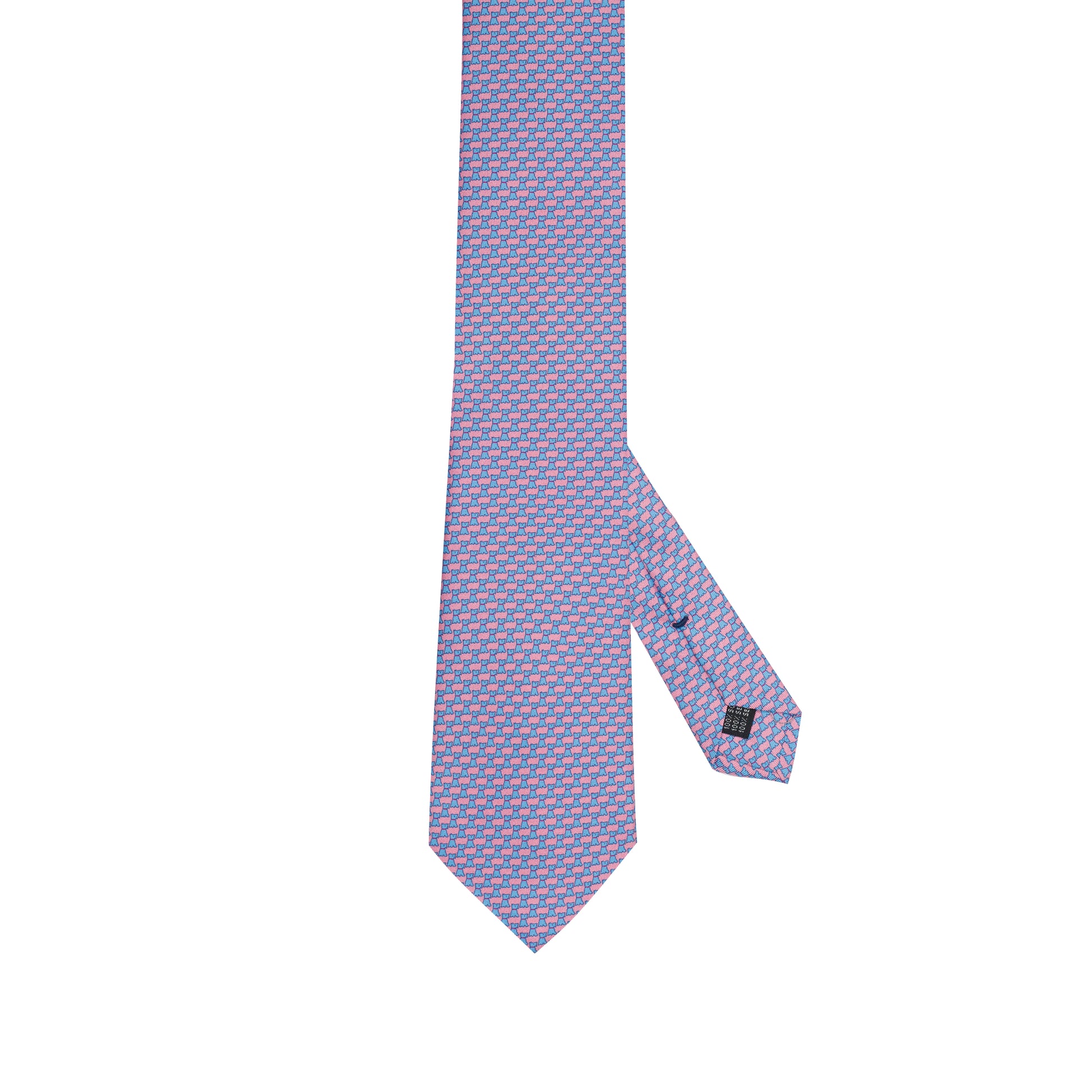 Cravatta in seta italiana al 100% azzurra con micro texture a forma di cane rosa
